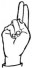 На ћирилици написано ВОЈИМИР ПЕШТЕРАЦ састоји се из 15 слова [?]. Исписано ћириличном једноручном азбуком за глувонеме: